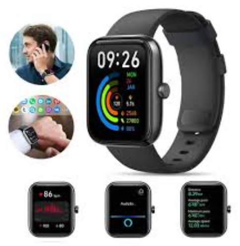Relógio inteligente concebido para monitorização de atividade física e notificações em tempo real, combinando funcionalidade prática com design moderno.